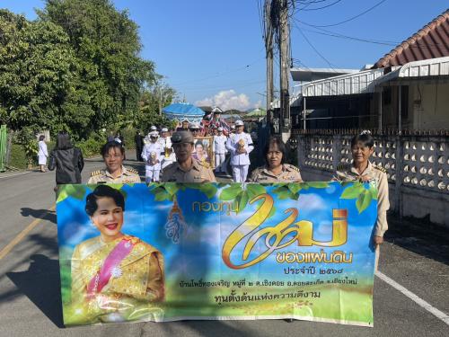 พช.ดอยสะเก็ด จัดพิธีอัญเชิญเงินพระราชทานขวัญถุงกองทุนแม่ของแผ่นดิน ประจำปี 2568 บ้านโพธิ์ทองเจริญ หมู่ที่ 2 ตำบลเชิงดอย อำเภอดอยสะเก็ด